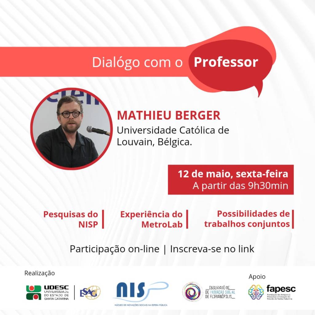 O objetivo do diálogo é trocarmos experiências entre pesquisas produzidas no NISP/Observatório de Inovação Social e a pesquisa produzida pelo professor belga, entitulada “MetroLab”.