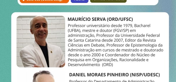 Venha participar da Aula Aberta: Epistemologia da administração no Brasil: presente e futuro, com Prof. Daniel Moraes Pinheiro e Prof. Maurício Serva 🗓 Data: 26