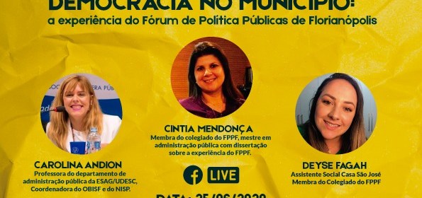 Neste mês de aniversário do Fórum de Políticas Públicas de Florianópolis, será comemorado os seus 14 anos com a realização da sua 1ª Live com
