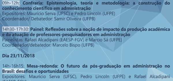Ocorrerá nos dias 22 e 23 de novembro de 2018 o Colóquio de conhecimento e pesquisa em Administração, sediado na UFPB, e organizado pelo prof.